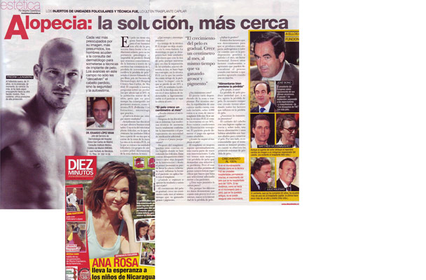 Hace unas semanas fui entrevistado por la revista Diez Minutos, interesada en abordar las técnicas de implante de pelo más avanzadas y que ofrecen mejores resultados, el microtrasplante folicular y la técnica FUE, ante el interés creciente de los hombres, entre ellos muchos famosos, de cuidar su apariencia física y recuperar su cabellera perdida.