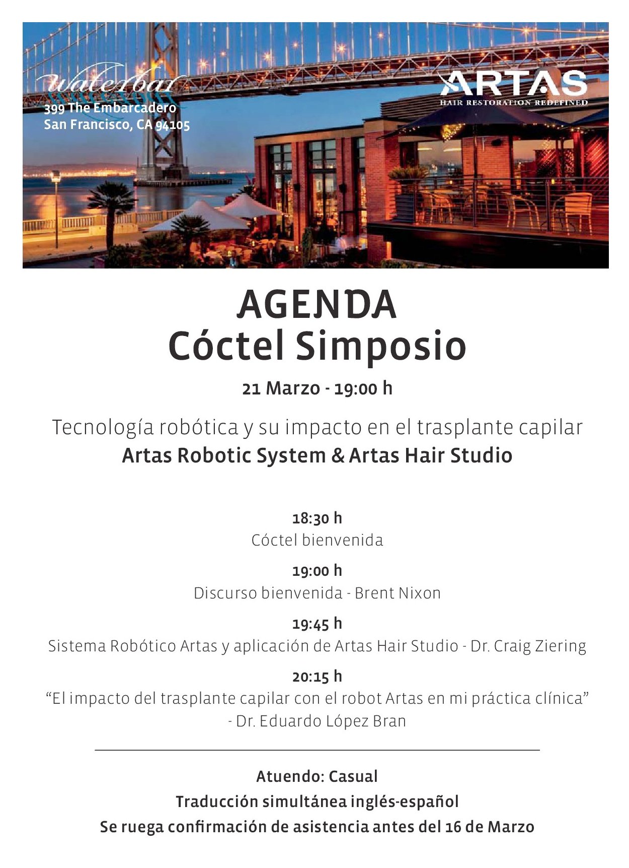 - Restoration Robotics eligió a Clínica Imema para ser Centro de Formación en Europa de doctores y cirujanos en el manejo del robot, y posteriormente para lanzar en toda Europa la segunda generación del robot Artas.